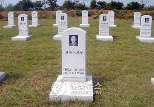 | ↑ 평양시 용성구역에 있는 춘원 이광수의 묘. 북한은 이곳에 납북 및 월북 인사 수십명의 유해를 안치했다. |